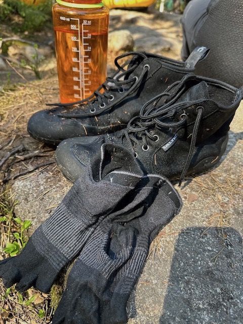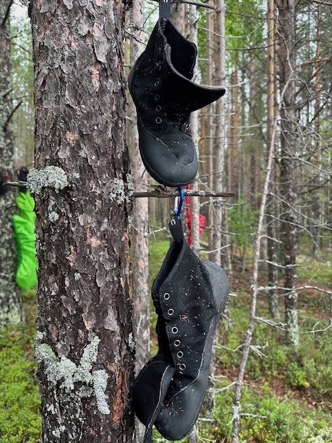 Kesällä 2023 lähdin yksin vaeltamaan Patvinsuon kansallispuistoon. Minulla oli jalassani hieman edellisiä vaelluskenkiä kevyemmät nahkaiset vaelluskengät, joita olin käyttänyt pitkin kevättä. Kengät olivat aikaisempia kenkiä kevyemmät ja hieman leveämpää mallia. Se tuntuikin aluksi mukavalta, jalkapöytä ja varpaat saivat enemmän tilaa. Kengät olivat kuitenkin jäykät ja edeltäjiensä tapaan kuumat ja hengittämättömät Goretex-kalvon ansiosta ja jalkani hikoilivat runsaasti. Ensimmäisen vaelluspäivän jälkeen havaitsin leirissä, että päkiöiden alla oli tapahtunut hankausta ja ne punoittivat. Kävin illalla uimassa Koitereessa, punoitus lakkasi ja unohdin koko jutun.
