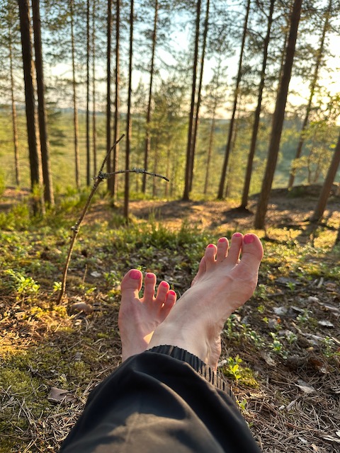 Siitä alkoi minun tieni paljasjalkakenkien maailmaan! Tutkin asiaa paljon, luin artikkeleita ja Facebookin paljasjalkailijoiden ryhmiä. Kävelin vuorotellen paljasjalkakengillä ja tavallisilla kengillä. Huomasin pian eron. Tavallisissa kengissä varpaani olivat ikään kuin nipussa kengän sisällä kun taas paljasjalkakengissä ne saivat vapaasti levitä. Pidin myös siitä tunteesta, että tunsin maan jalkojeni alla joka askeleella. Tähän liittyen koin myös yhden kivuliaan kokemuksen. Astuin epähuomiossa kantapää edellä suoraan pienen kiven päälle ja se sattui tosi paljon! Kantapää kipeytyi tuosta ja pidinkin jonkun aikaa geelimäistä tyynyä kantapäiden alla paljasjalkakengissä, kunnes kantapään kipu rauhoittui.